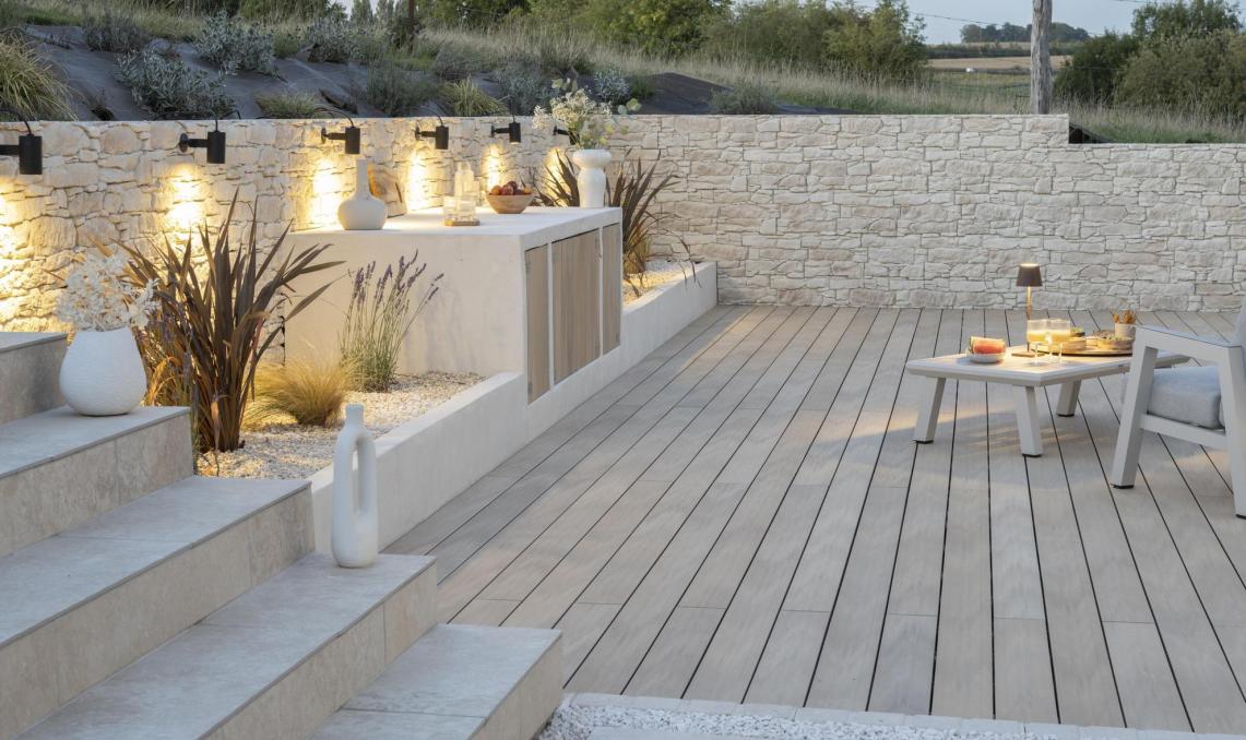- en harmonie avec l’intérieur : la terrasse en Nuances Chêne clair vient rappeler le parquet chêne clair de la maison