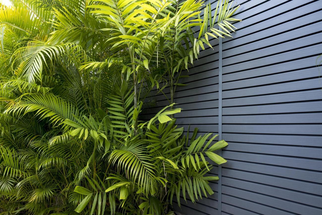 Grâce à sa forme biseautée, la lame garde l’esthétique du claire-voie, mais empêche de voir à travers (principe claire-voie).