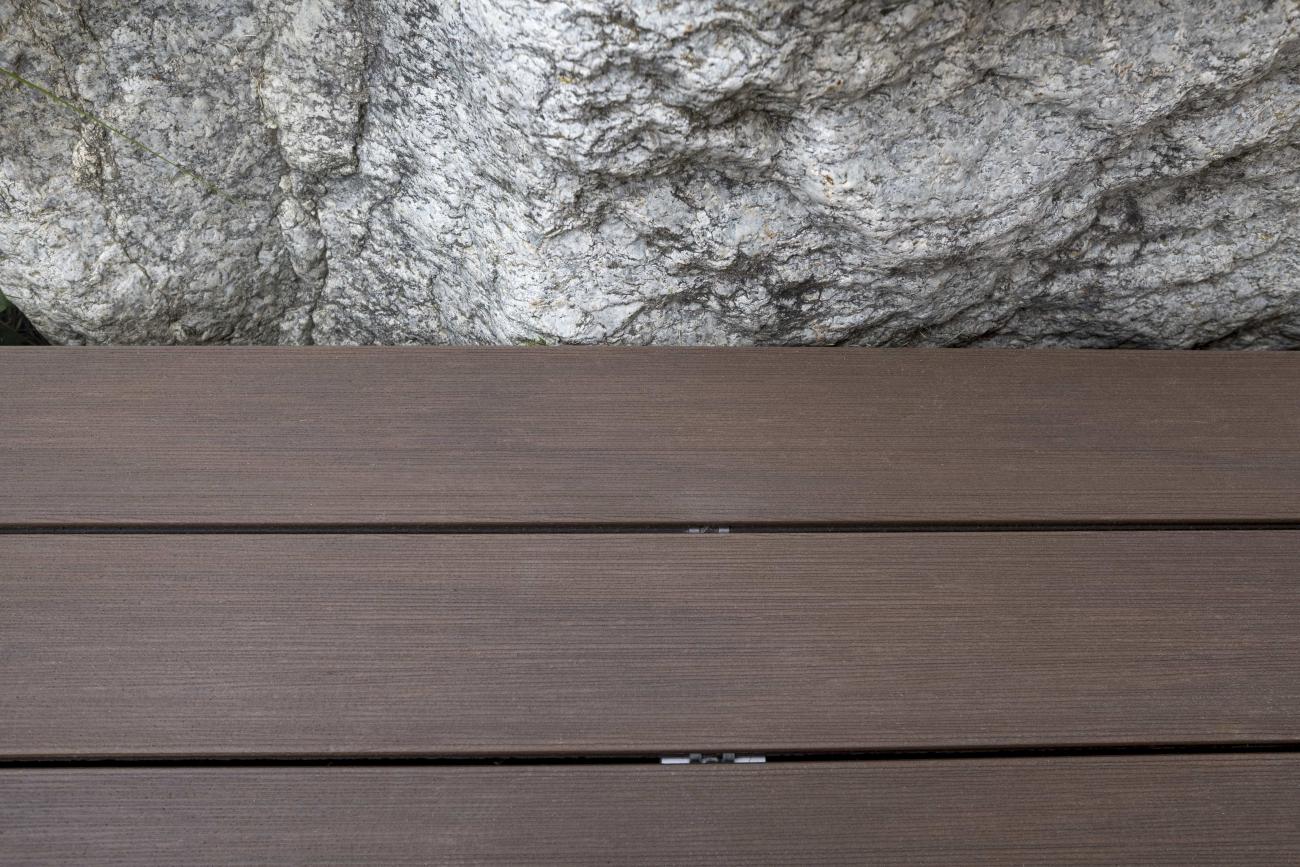 Notre lame de terrasse en bois composite Atmosphère bénéficie d’une technologie de fabrication spécifique qui lui confère des caractéristiques exceptionnelles. La lame Atmosphère ne subit pas de variation de couleur, sa teinte reste absolument stable au fil du temps ! De plus, elle présente une très grande facilité d’entretien face aux taches domestiques. C’est une lame de terrasse pleine (non alvéolaire) innovante et résistante. C’est une planche de terrasse “tous terrains” convenant aux projets les plus exigeants et aux usages les plus intensifs.