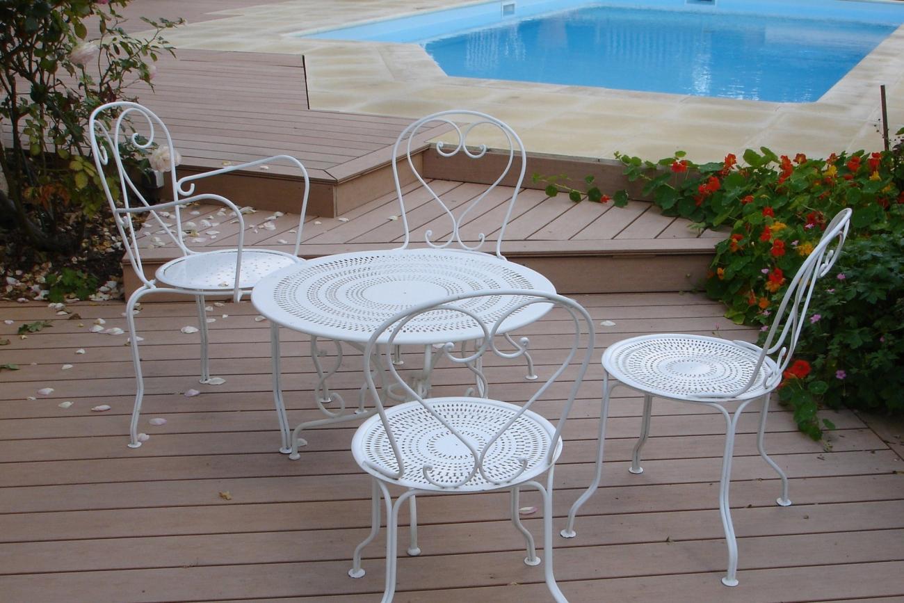 Teintés dans la masse pour assurer l’homogénéité et la pérennité de leur couleur, les profilés de terrasse sont pleins. Non alvéolaires, ils ne craignent ni le gel, ni la reprise d’humidité. Les lames se travaillent comme une planche de bois massif, il est possible de les déligner, de les raboter ou de les percer. Ceci permet de créer des aménagements tels que des escaliers, des arrondis ou l’intégration de spots.