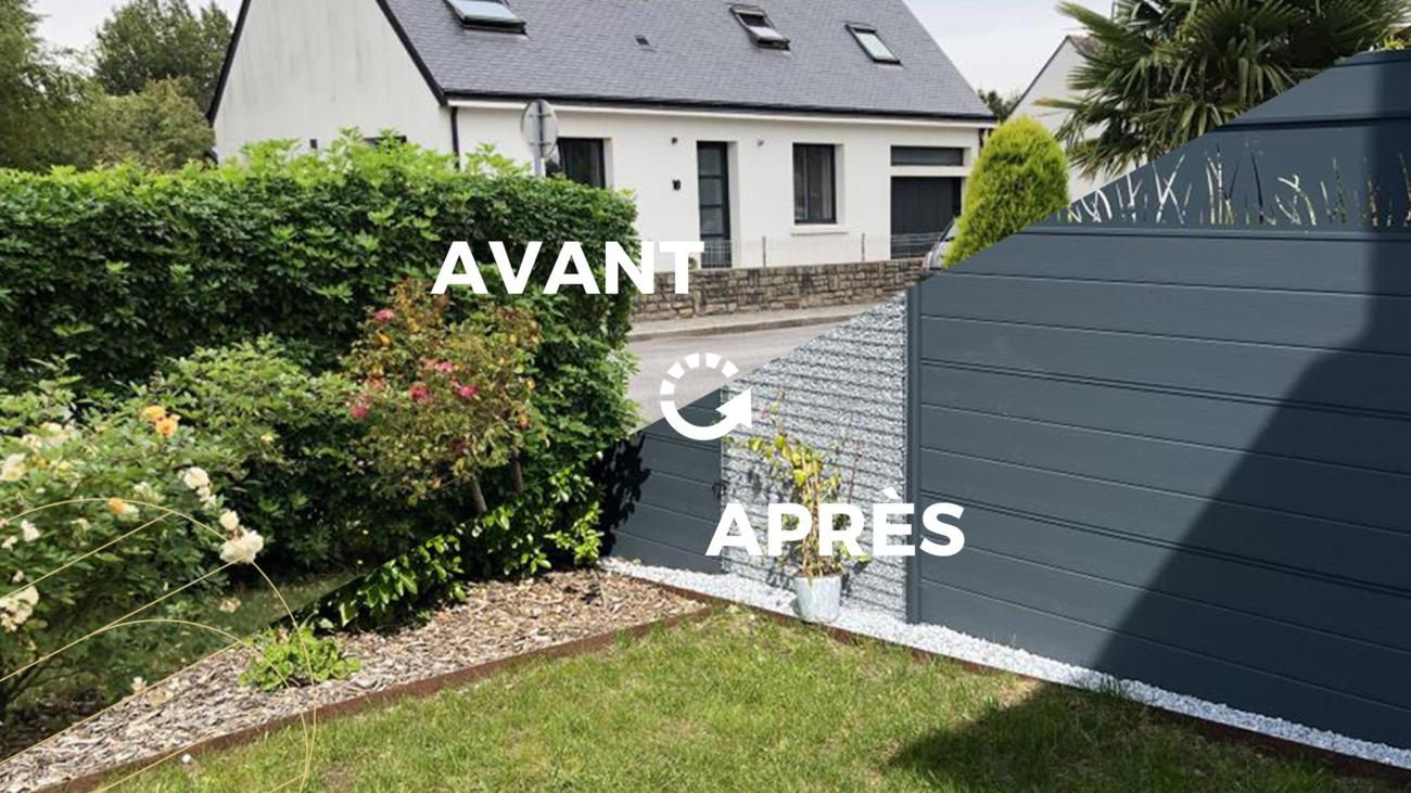 Avant / Après terrasse et clôture, décor végétal en aluminium